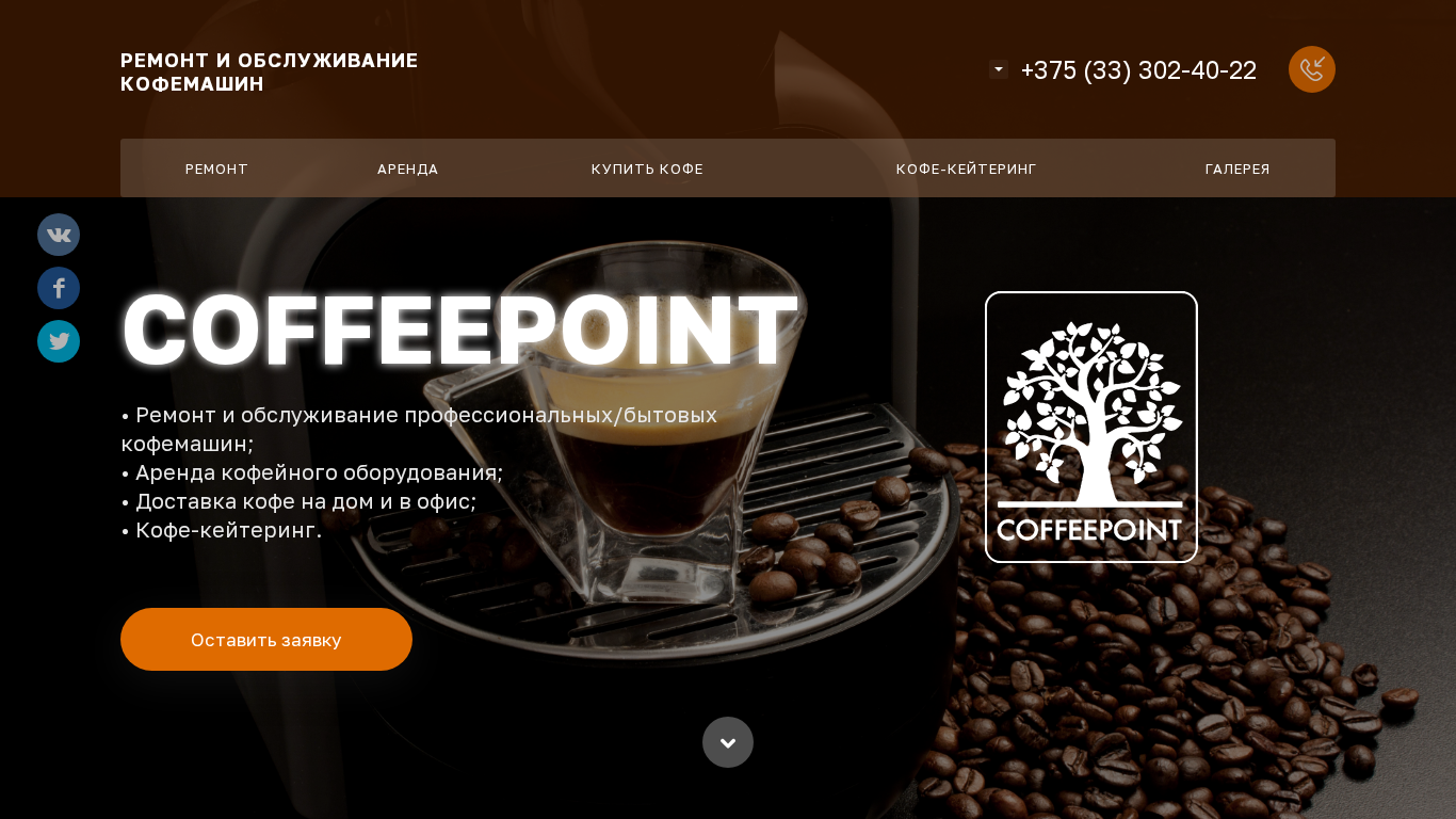 | SEO-описание | Ремонт и обслуживание профессиональных/бытовых кофемашин, аренда кофейного оборудования, доставка кофе на дом и в офис, кофе-кейтеринг |