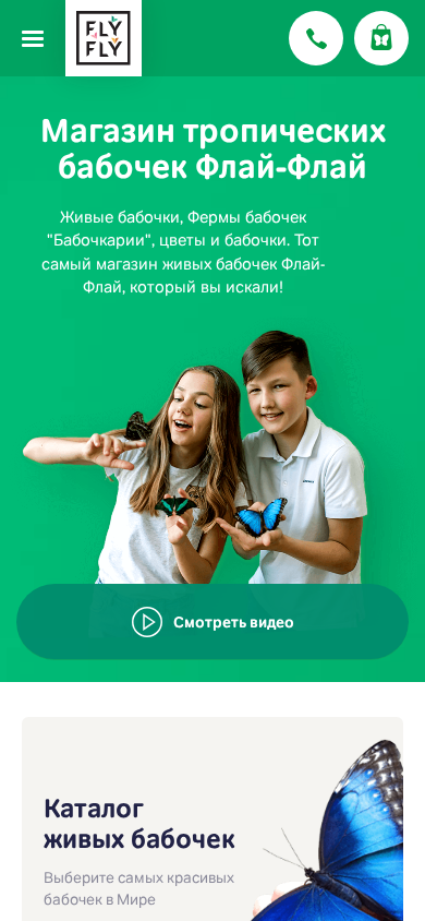 | SEO-описание | Fly-fly.ru - это популярный в Минске магазин живых бабочек. Мы занимаемся продажей живых тропических бабочек, организацией салютов из бабочек и продажей бабочкариев. Все бабочки выращиваются на нашей собственной небольшой ферме, поэтому мы предлагаем к продаже только свежих бабочек с максимальным сроком жизни. |