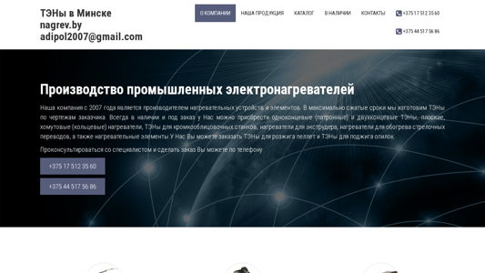 | AI-анализ | The portal specializes in the production of heating elements and devices in Minsk, Belarus. It offers various types of heaters such as one-end and two-end resistive heating elements, flat, and hoop heaters, as well as heaters for extruders, and heaters for railway switch points. The company also manufactures heating elements for kromkooblizochnik stations, heating elements for pellet burning, and heating elements for igniting oat pellets. Thermostatic wires are available in stock. The products include nickel wire X20H80. The website provides information about the company, its production, and a catalog of its offerings, along with contact details for ordering. |