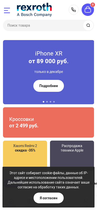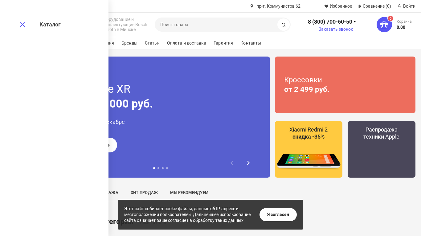 | AI-анализ | --- This online resource is a Bosch Rexroth store for the Belarusian market, offering various equipment and components for sale. The website includes sections for equipment in different cities, a catalog, news, brands, services, licensing and certification information, vacancies, and contact details. The homepage features current promotions such as discounts on iPhones XR, flannel coats, virtual reality headsets, motorcycle helmets, and crosses. Additionally, there are special offers on Samsung washing machines, mirrored photo cameras, and 4K Ultra HD televisions. The website also provides information on ongoing sales and limited-time promotions. |