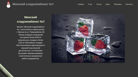 The website is for Mhlad1 Minsk Chladocombinat No.1, a refrigerated storage facility located in the center of Minsk, Belarus. The website offers rental services for refrigerated warehouses, offices, and refrigerated chambers. The facility has a capacity of over 4200 m³ of refrigerated storage and over 2200 m³ of dry storage. Its central location provides easy transportation access, allowing for efficient logistics operations. The company began as a Soviet meat and dairy processing plant in 1951, but now offers modern, high-tech services for the storage and logistics of various types of goods, including food and non-food items. The company's services include responsible storage of goods, and it is the largest operator in Minsk for storing mixed-type products, particularly in the frozen state, with the ability to shock-free