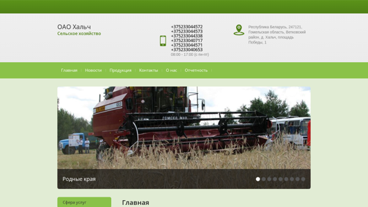 | Название / Заголовок | Производство и реализация сельскохозяйственной продукции - ОАО "Хальч", Гомельская область деревня Хальч |