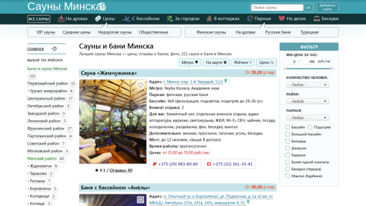 | Название / Заголовок | Сауны Минска – 221 сауна и баня с ценами, фото, отзывами |