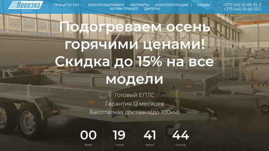 | AI-анализ | --- This online resource is dedicated to selling light trailers in Minsk, Belarus. The website offers trailers from an official dealer at the lowest prices. Potential customers are encouraged to call the phone number +375 (44) 55-66-55-1 for more information or to place an order. The website provides details on various types of trailers including light, cargo, and boat trailers. Financing and leasing options are available, along with information on accessories and add-ons. The website also features special offers and deals, and contact information for dealers. The domain name for this website is povozka.by. |
