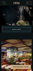 | AI-анализ | This online resource, titled "Restaurant Gosti," provides information about a contemporary and comfortable restaurant located in Minsk, Belarus, at Independence Avenue 25. The website showcases the updated design of the restaurant, which emphasizes a combination of greenery, wood, and white light. The bar area with a large counter welcomes guests and offers an appetizing view. The spacious hall features soft divans, various shaped tables, and luxurious chairs, all contributing to a relaxing atmosphere. The unobtrusive ambiance and friendly staff are highlighted. The menu is accessible through the "Menu" option, with choices for the main menu and lunch. The restaurant's contacts, including phone number and opening hours, are also provided. The business registration details, licensing information, and website development credits are included in the footer. The website allows users to reserve a table. |