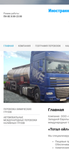 | AI-анализ | The portal Totaloil.by is a company specializing in the international transportation of liquid bulk goods in tank trucks to countries in the European Union (EU) and the Commonwealth of Independent States (CIS). The company handles the transport of both hazardous and non-hazardous liquids, including food products such as oils, fats (both plant-based and animal), milk, and starch, as well as various chemicals that are not easily flammable, explosive, toxic, corrosive, or radioactive. The company uses powerful and efficient daily trucks from DAF XF 105.460 and is a member of the Association of International Road Transport Carriers (BAMAP). All transportation vehicles are insured with cargo insurance policies. Non-hazardous goods are transported in IMO2 tankers, which are available in the company's fleet. These |