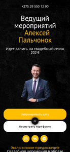 | AI-анализ | The portal veduprazdnik.by is a website dedicated to leading spiritual events and the most beautiful wedding ceremonies, managed by Alexey Palchonok. The site provides information on services offered, including wedding ceremonies, a portfolio, testimonials, contacts, and exclusive offers. Alexey Palchonok, the host, has been entertaining guests at weddings, corporate events, jubilees, conferences, and baptisms for over five years. A graduate of the Belarusian State University of Culture, he has found not only a good and interesting job but also his calling in life. He has his unique style of hosting events and is not afraid to experiment, creating a concept and an individual scenario with his clients. He is able to connect with both the younger and older generations. His main strengths include youth, charisma, and experience. The events are intelligent and warmly family-oriented. An |