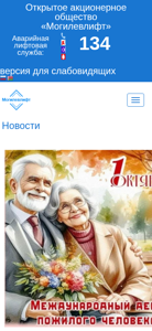 | AI-анализ | The website is of the open joint-stock company 'Mogilevlift', which provides elevator services. The site includes sections for the company's services, contacts, and a graph for the reception schedule of the company's management. The site also offers safety rules for children and adults using elevators, as well as detailed rules for the operation of passenger elevators. The site is available in Belarusian and Russian languages, and requires JavaScript to use its multilingual features. The design features a standard font size and color scheme, with options for black on white, white on black, and various other color combinations. The site includes a section for job vacancies and news, as well as materials on fire safety and preventing extremism and terrorism. The site is operated 24 hours a day and serves over 3,000 elevators, with 55 years of experience in elevator equipment. Services offered include the |