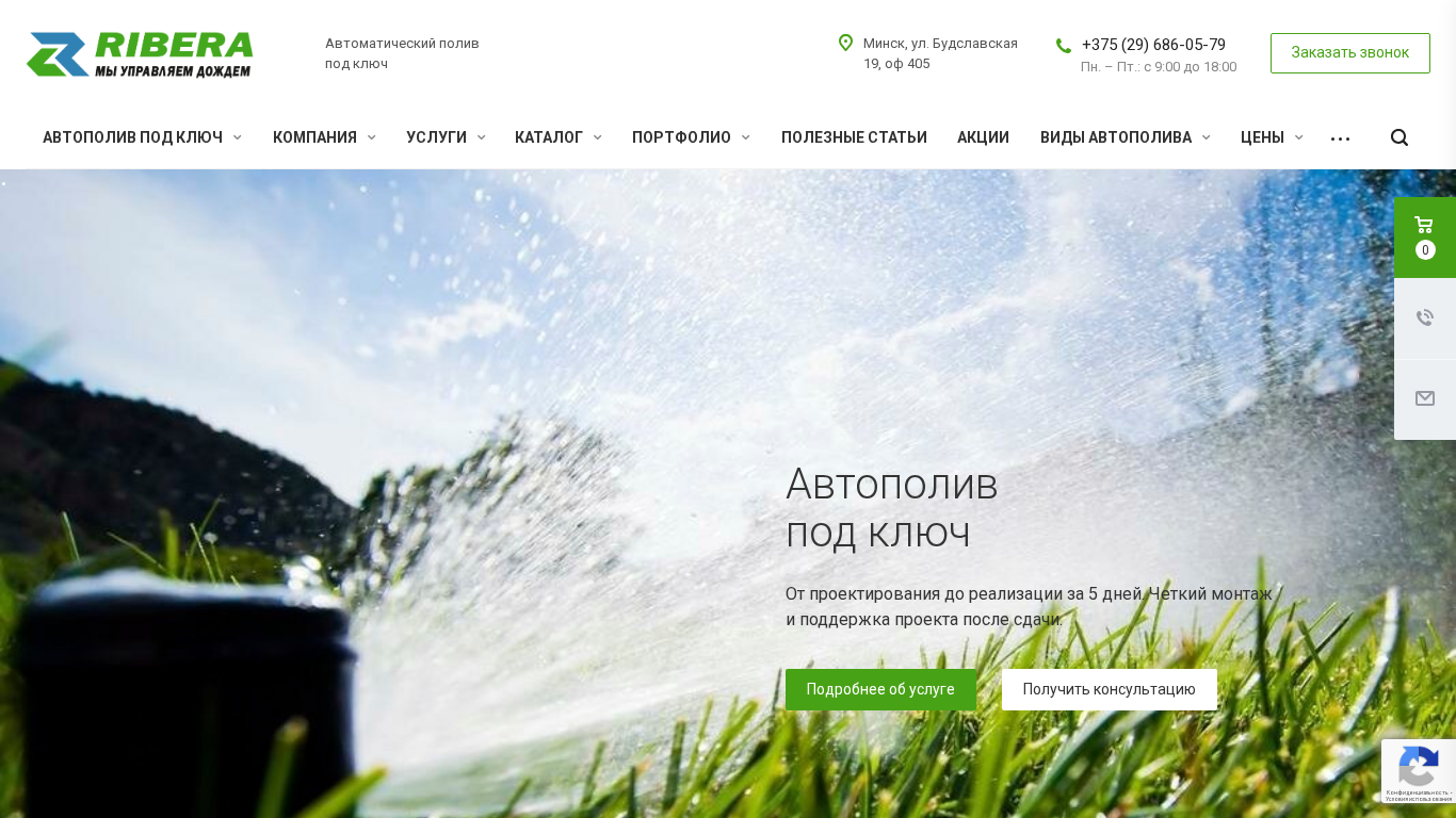 АдресАвтоматический полив, под ключ, +375 (29) 686-05-79, Пн. – Пт.: с 9:00 до 18:00, Заказать звонок, Минск, ул. Будславская 19