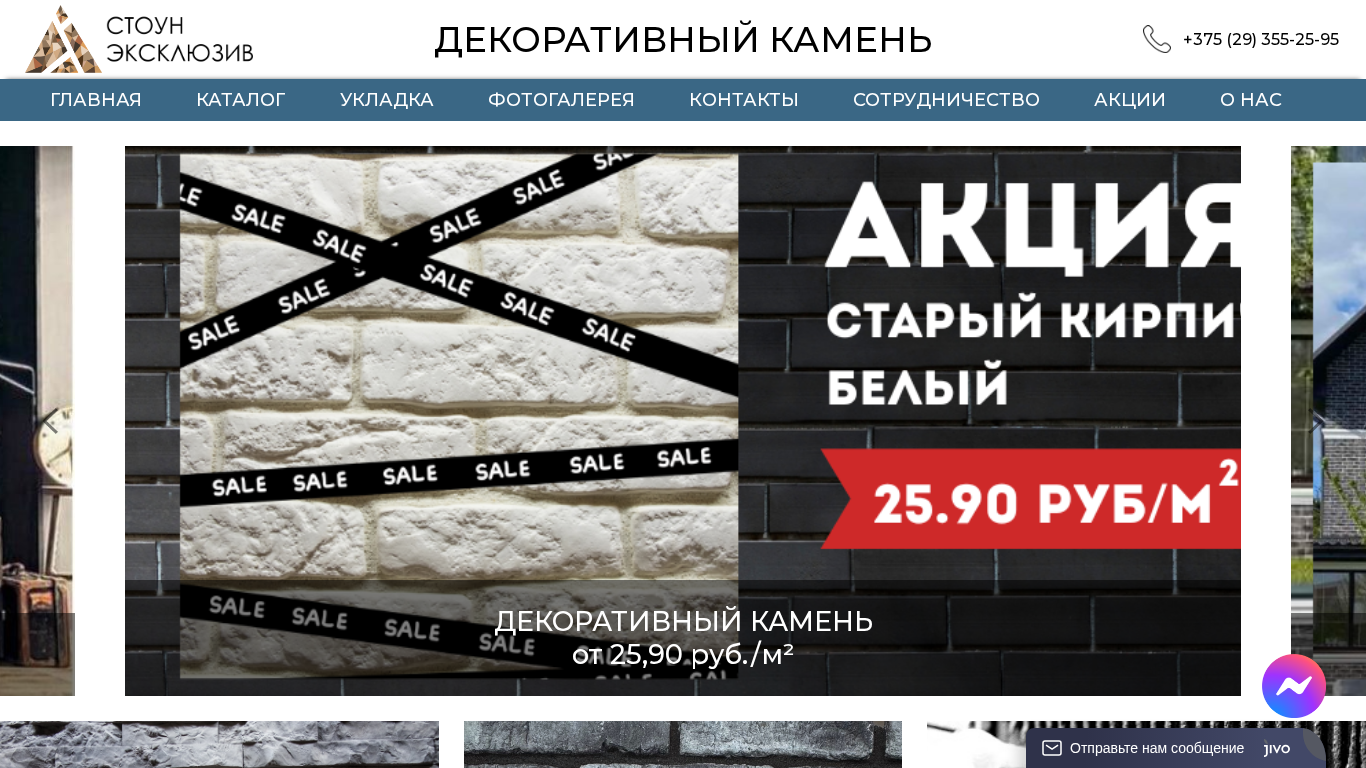 | SEO-описание | Декоративный камень и кирпич из бетона и гипса от производителя Стоун Эксклюзив. Искусственный камень для внутренней отделки по лучшим ценам в Минске. |