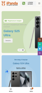 | AI-анализ | The portal iPanda.by is an e-commerce store based in Minsk, Belarus, specializing in electronics and smart devices. The website offers a wide selection of products, including smartphones, tablets, laptops, and smartwatches from popular brands such as Apple, Samsung, and Xiaomi. Customers can purchase items online and have them delivered throughout Belarus. The store features discounts, weekly sales, and promotions. The site's menu includes sections for smartphones, tablets, laptops, and accessories. It appears that the iPhone 16 line and the Redmi Note 14, 14 Pro, and 14 Pro+ are currently available for purchase. The Galaxy S25 Ultra can be ordered, and the Galaxy S24 Ultra offers the power of AI. The website also provides a blog about gadgets and a search |