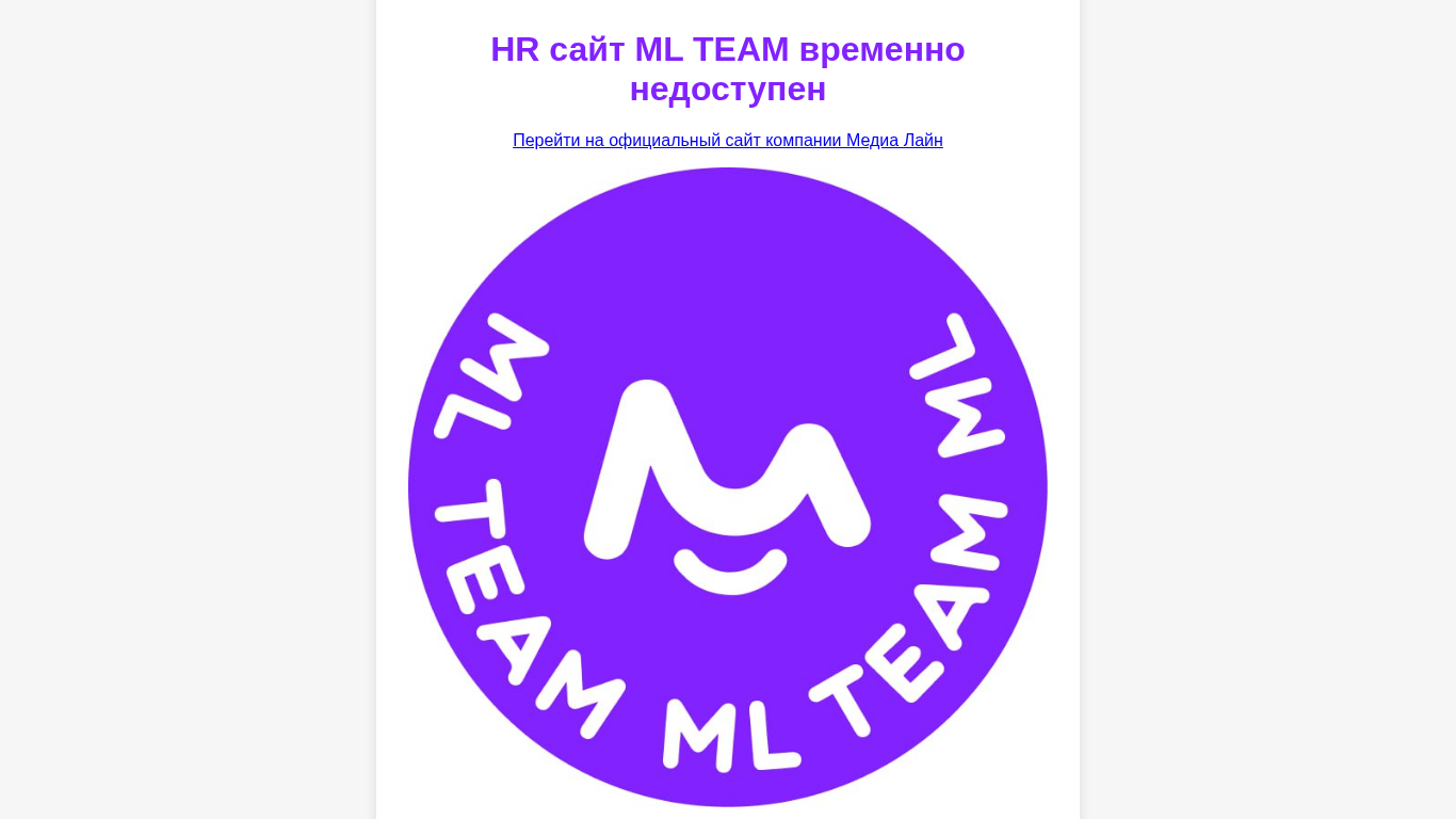 | Название / Заголовок | HR сайт ML TEAM временно недоступен |