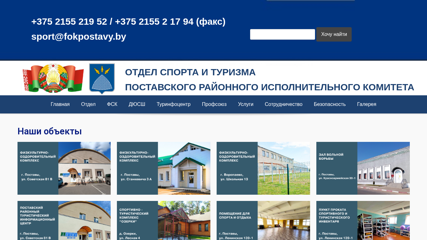 | Название / Заголовок | Отдел спорта и туризма Поставского райисполкома | г. Поставы, ул. Советская, д. 81«В» тел. 8 (02155) 2-39-72 |