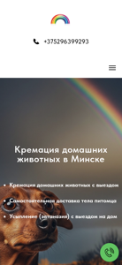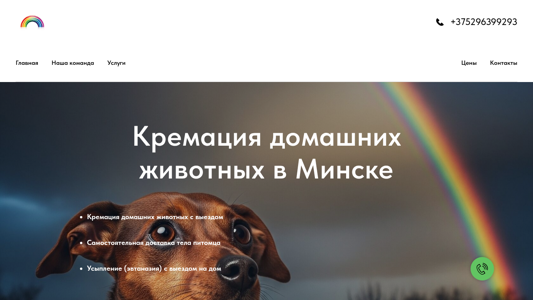 | AI-анализ | --- This online resource is dedicated to providing animal cremation services in Minsk, Belarus. It features a private crematorium with low prices and the option for on-site services. The website offers both group and individual cremation, as well as humane euthanasia at home. The team is composed of professionals committed to animal welfare and easing the suffering of pets and their owners. They follow ethical principles and ensure a caring approach throughout the process. The website lists their services, including cremation in Minsk and the surrounding area, home euthanasia for cats, dogs, and other pets, and an online application form. The team also provides support and care to pet owners during difficult times, with numerous positive reviews confirming their professionalism. Prices are listed without including on-site services. The website is accessible at [naradygy.by](http://naradygy. |