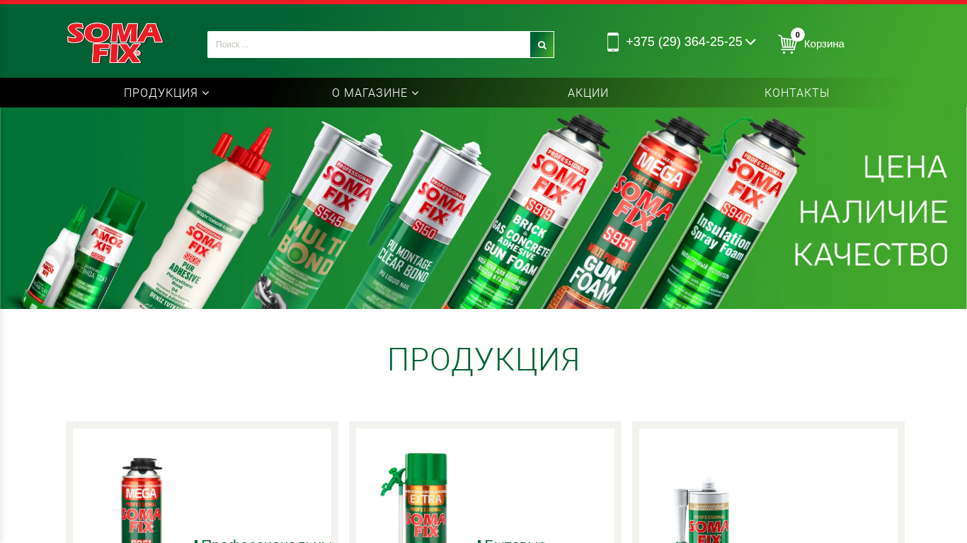 | SEO-описание | Строительная химия Somafix - профессиональная монтажная пена оптом, силиконы, жидкие гвозди, герметики. ✅10 лет на рынке Беларуси. ☎ 364-25-25 |