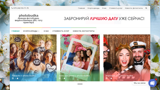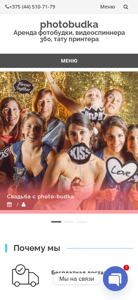 | AI-анализ | The website offers rental services for photo booths, video spinners 360, and button games for various celebrations in Minsk and all over Belarus. The homepage includes a main menu with sections for services, about us, pricing, news, and contact information. The services section features a drop-down menu for video spinner, photo booth, photo booth with AI, and tattoo printer, along with details about each offering, such as unique design and attendent service. The news section includes articles about events and client testimonials, and the contact information includes a phone number for reservations. |
