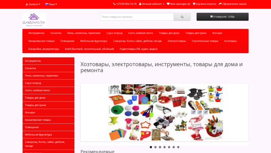 | AI-анализ | --- The portal Dladoma.by is an online store selling household items, tools, and electrical appliances in Bobruisk, Belarus. The shop offers a wide range of products including hardware, home improvement tools, painting supplies, and electrical appliances. The store also sells batteries and light bulbs. Customers can contact the store at +375 29 954 76 76 for inquiries or to place orders. The website features a personal cabinet for user registration and authorization, a shopping cart, and a list of categories including instruments, accessories, and various household items. The store sells various types of adhesive tapes, pencils, brushes, and paint. The website accepts payments in US dollars and Belarusian rubles. |