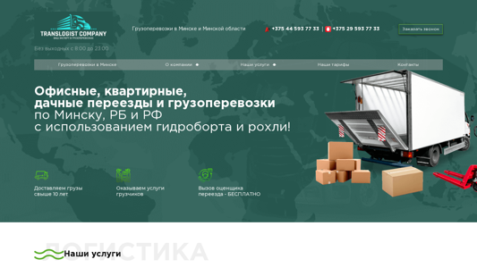 | SEO-описание | Грузоперевозки Минск недорого и в кратчайшие сроки. Офисные, квартирные, дачные переезды и грузоперевозки по Минску и Минской области с использованием гидроборта и рохли! |