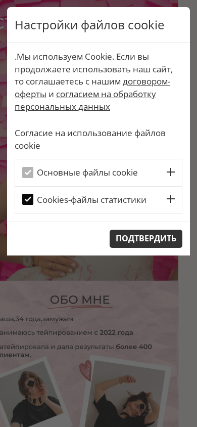 | AI-анализ | The portal sashatape.by is a studio specializing in taping services, which has been in operation since 2022. The studio has provided results to over 400 clients and has developed its own author techniques and protocols for quick results. The owner has undergone numerous trainings and now successfully teaches others. The website uses cookies and requires user consent for their collection and processing of personal data according to the site's terms of use. The main cookie files are necessary for the site's functionality and cannot be disabled, while cookies for statistics help track site visits to measure and improve performance. All information collected by these cookies is aggregated and anonymous. |