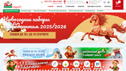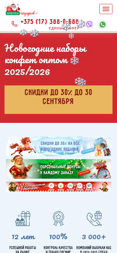 | AI-анализ | --- This website is for ordering New Year's sweet gifts for children in 2025-2026 from the company "Factory of Gifts" in Minsk. They offer a large assortment of sweets in various price ranges and deliver throughout Belarus. The contact number is provided. |