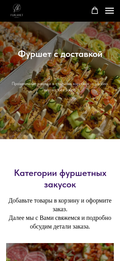 | AI-анализ | --- The portal Furshet Brest offers delivery of ready-to-serve dishes, appetizers, and mini-meals in Brest for holidays, corporate events, and cozy gatherings. All dishes are prepared using fresh ingredients and attractively presented. Place your order and we will contact you to discuss the details. Categories include bruschettas/crostinis, boxes with blini, canapes, tartletkis and baskets, gastronomic boxes, fruit and vegetable cuts, children's menu, hot and cold appetizers, picnic dishes, salads, and desserts. Reasons for choosing us include product freshness and branded packaging. Orders can be paid without cash, and invoices and closing documents are provided for legal entities. Delivery is made on time in Brest and nearby areas, with an option for self-pickup by prior arrangement. Each |