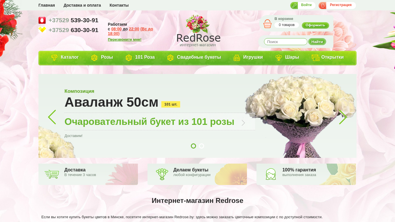 | SEO-описание | Купить букеты цветов в Минске на ➦ RedRose.by. Заказать букет по тел.☎: 8 (029) 539-30-91. Оперативная доставка букетов цветов ☑ Низкие цены $ |