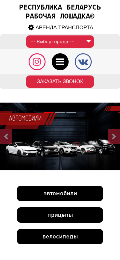 | AI-анализ | language: ru The portal offers car, trailer, and bicycle rentals in Belarusian cities including Minsk, Novopolotsk, and Soligorsk. Users can submit a request for a desired car model on the website or visit one of their offices. The website also mentions the import of vehicles from the US and other countries, as well as assistance with document procurement and vehicle inspections. The company's contact information, including phone numbers and addresses, is provided for each listed city. The rental prices for various car models are listed, ranging from 75 to 95 rubles per day. The website is available in Russian and the domain is loshadka.by. |