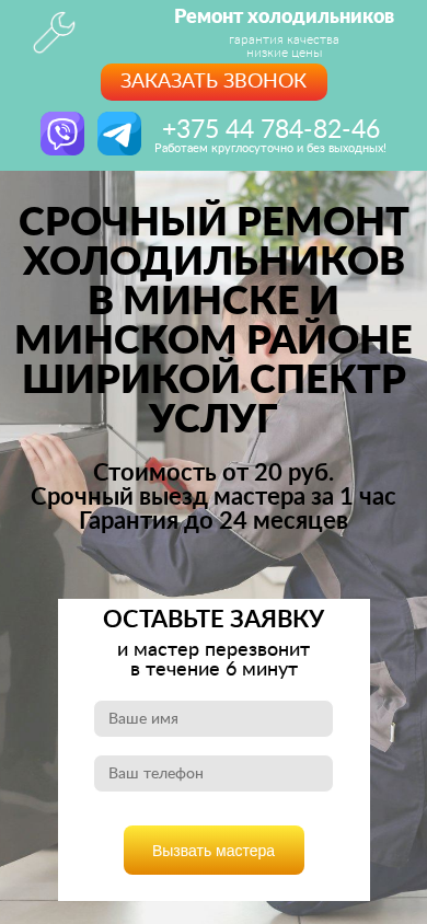 | SEO-описание | Срочный ремонт холодильников в Минске. Гарантия до 24 месяцев. |