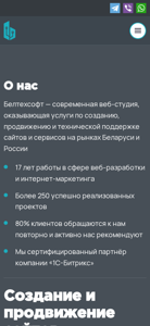 | SEO-описание | Создание и продвижение продающих сайтов в веб-студии Белтехсофт⭐️ Агентство интернет-маркетинга полного цикла❗️Опыт 17 лет❗️Дизайн ✅Техническая поддержка ✅Контекстная реклама |