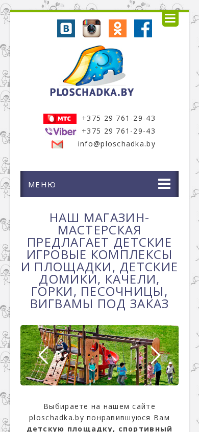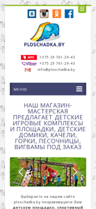 | AI-анализ | The web project "Детские игровые комплексы под заказ (Custom Children's Playgrounds)" offers custom-made children's playgrounds, including teepees (wigwams) with delivery and assembly in Belarus, as well as free on-site measurements and individual completion (straps, swings, etc.). The website sells children's playground complexes, swings, children's houses, slides, sandboxes, and teepees. Customers can modify the size, color, and completion of the items. Delivery and production take 1-3 weeks for complexes and other items, and 2-4 days for teepees. Categories of goods include playgrounds for the street starting at 500 rubles, children's swings starting at 300 rubles, wooden children's swings for |