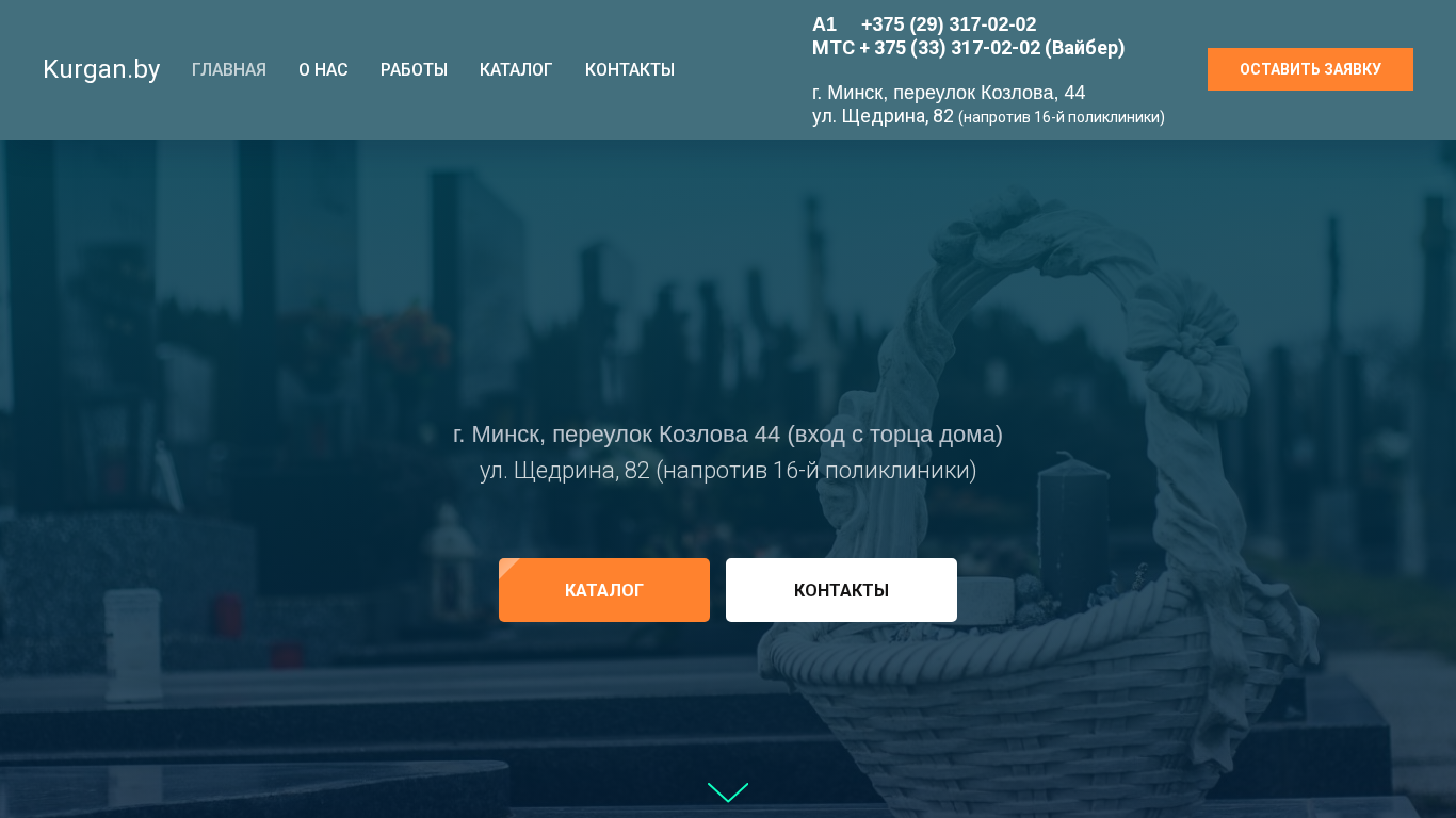| AI-анализ | --- The web project "Kurgan.by" focuses on the production and installation of monuments and landscaping for cemeteries in Minsk, Belarus. Keywords associated with the site include "manufacturing," "we," "works," "catalog," "Minsk," and "installation." The site offers a 10-year guarantee on granite and 20 years of experience in the industry, along with a 3-year guarantee on installation. The site boasts a personalized approach to each client and a commitment to delivering high-quality work on time. The catalog section showcases various types of vertical, horizontal, and complex monuments, as well as granite ogradas. The site includes a section for past projects and an option to submit a request for a custom monument. The site can be reached through various phone numbers and addresses, including one on Pereulok |