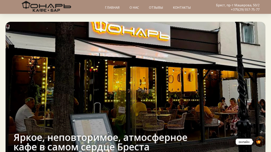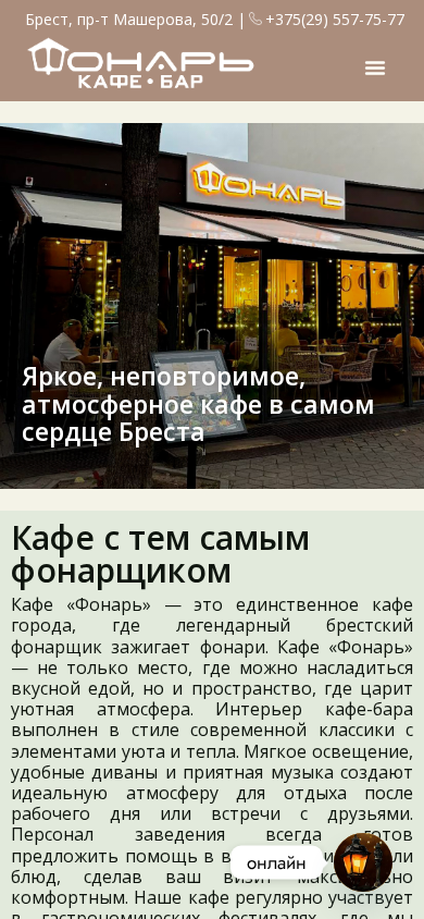 | AI-анализ | The web project "Кафе бар ФОНАРЬ в Бресте" (Café bar FONARY in Brest) is a café in Brest, Belarus, located at pr-t Mašěrova, 50/2. The café is known for its unique atmosphere, as it is the only café in the city where a legendary Brest fonaрщиk (street lamp lighter) lights the lamps. The café's interior is designed in the style of modern classicism with elements of coziness and warmth. Soft lighting, comfortable divans, and pleasant music create an ideal atmosphere for relaxation after work or a meeting with friends. The staff is always ready to help with the selection of beverages or dishes, ensuring a comfortable visit. The café regularly participates in gastronomic festivals, where unique dishes are presented and European traditions are shared with guests |