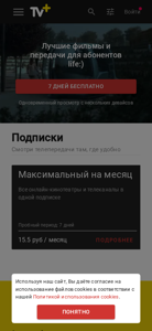 | AI-анализ | The web project TV+ by Life:) offers online digital television services with access to more than 90 HD channels, including favorite films and series from Amediateka, Start, and Premier collections. The service is exclusively for Life:) network subscribers and allows viewers to watch their preferred channels in high quality. New subscribers can enjoy a free 7-day trial period. For more information, interested users can call 909. TV+ also provides the option to watch television programs on multiple devices simultaneously and offers various subscription plans, including access to online cinemas and TV channels. The monthly prices range from 12 rubles to 15.5 rubles, with a 7-day free trial. TV+ offers a mobile application with features like smart search, delayed start, and language options for on-the-go viewing. The app provides access to various TV programs and channels, including Bel |