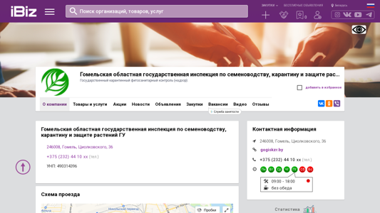 | Название / Заголовок | Гомельская областная государственная инспекция по семеноводству, карантину и защите растений ГУ - Государственный карантинный фитосанитарный контроль (надзор).. 246008, Гомель, , Циолковского, 36 |