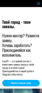 | AI-анализ | language: ru The website EasyBY is a service for orders and services in Belarus, allowing users to find a professional or job without intermediaries. The platform includes a Telegram group for clients, contractors, and those seeking employment. Users can place a request for any household or professional service and offer their own services as a master or freelancer. EasyBY provides direct contact with clients and live orders in various cities and regions of Belarus. The Telegram community includes a bot for filtering requests by city and category and a daily channel for publishing new orders. The platform is free and accessible to all users, including clients, contractors, and those seeking work. The categories for services range from sanitation, electricity, repair, transportation, IT, and various other fields. Find a specialist or become one yourself within minutes. The platform offers repair services for electronics, automotive, industrial equipment, construction, IT, |