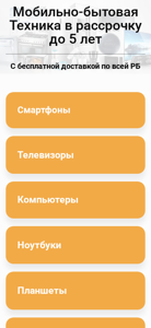 | AI-анализ | This website is the homepage of a Belarusian e-commerce store specializing in the sale of mobile and household appliances, offering financing and delivery throughout Belarus. Key products include smartphones, televisions, computers, laptops, tablets, refrigerators, cooking appliances, washing machines, coffee machines, vacuum cleaners, and other items. The store provides advantages such as installment plans, no initial payment, various credit program options, and online application process with quick approval. Delivery is offered at a convenient time. The company, OOO "Realnyy Marketyng," is located at 220140, g.Minsk, ul. Dombrovskaya, d.9, of.515, and is registered under UNP 192532855. The privacy policy and terms of public offer are also accessible on the site. |