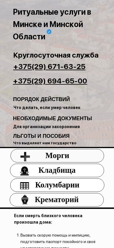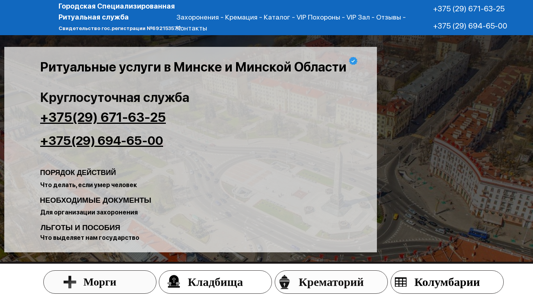 | Название / Заголовок | Ритуальные услуги в Минске круглосуточно, похоронное бюро B—ritual |
