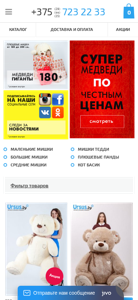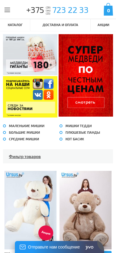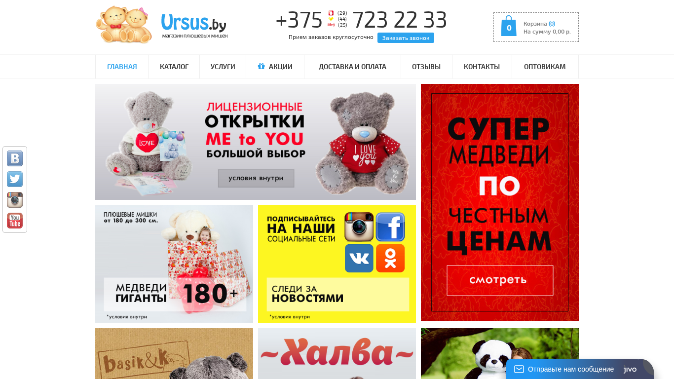 | SEO-описание | Купить плюшевого медведя с доставкой в интернет-магазине плюшевых медведей и других мягких игрушек с доставкой по Минску и всей Беларуси. Большой выбор мягких игрушек! |