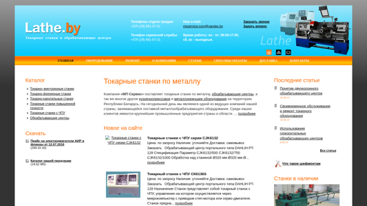 | AI-анализ | The portal Lathe.by is a company called MP-Service that provides lathes and milling centers, as well as other metalworking and metal-cutting equipment, to the Republic of Belarus. Currently, they are one of the leading companies in the country for supplying metalworking equipment. Their clients include major industrial enterprises in the area. The website offers information on their products, including CNC lathes and CNC milling centers, as well as portable machining centers and other types of equipment. Prices, availability, and delivery options can be inquired through the site. The catalog section includes detailed specifications for various models of lathes and milling centers. |