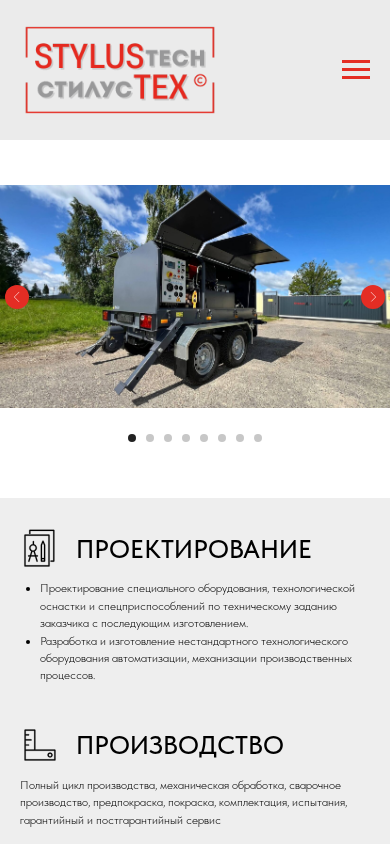 --- This website is for StylusTech, a company that has been designing and manufacturing food and chemical technology equipment since 2012. The site contains information about their products such as cranes, conveyors, presses, and mixers. They offer industrial lines, elevators, and tanks for loading. The company also provides services for certification of their products and production processes, including declarations and certificates of conformity, certificates of origin, and patent protection for industrial samples. StylusTech offers consulting services and their contact information is provided on the site along with payment details and a map for reaching their office in Lepeль. The site also includes information about their production process, which involves designing and manufacturing custom equipment and automation systems, as well as mechanical and welding production, painting, assembly, testing, and post-warranty service.