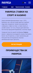 | AI-анализ | --- The website PariPesa is an official sports betting and casino platform, offering users the best bonuses and coefficients for sports betting with instant deposits and withdrawals. Established since 2019, the company caters to a large user base with sports betting and online casino games. Features include bonuses for newcomers, free spins, and seasonal promotions. The platform supports over 25 currencies and has a low deposit threshold, making it accessible to a wide range of potential players. Registration is supported in over 20 language versions, ensuring a seamless and efficient user experience. The site operates legally and officially, holding a license from Curacao, and is available in several countries in Africa and Eastern Europe. Paripesa boasts a high reputation, as evidenced by numerous positive user reviews. Services include customer support, available in real-time through live chat, |