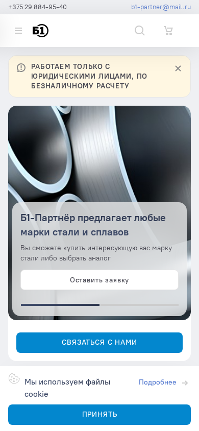 | AI-анализ | The website is a business-to-business (B2B) e-commerce platform for selling various types of metals, metal products, metal alloys, laboratory equipment, and polymeric, atomic-titanic, and resistance temperature indicator (RTI) systems. The company, ООО "Б1-Партнёр," offers a wide range of metal brands and their alternatives. The website provides a catalog section for users to find and purchase selected products, and it operates only with legal entities, on a non-cash basis. The website's contact information includes a phone number (+375 29 884-95-40) and email address (b1-partner@mail.ru). Users can also submit a request for product pricing by providing their name and phone number and clicking a button to agree to data processing. The website offers support from Monday to |