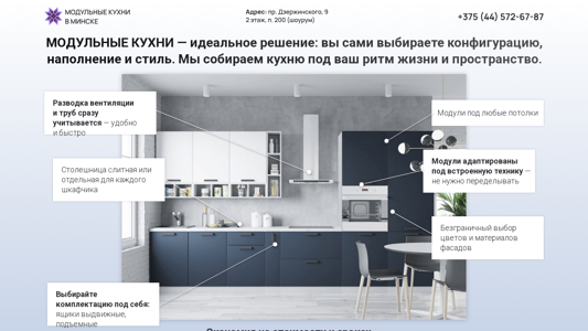 | AI-анализ | --- This online resource is dedicated to custom-made modular kitchens in Minsk, Belarus. The website offers a wide range of configurations, fillings, and styles for customers to choose from. The modular kitchens are assembled according to the customer's rhythm of life and space. The modules are adaptable to built-in appliances, eliminating the need for additional adjustments. Customers can select various components such as pull-out shelves, lifting shelves, and built-in ventilation and piping systems for convenience and quick installation. The website also features a calculator to estimate the cost and completion time of a modular kitchen. |