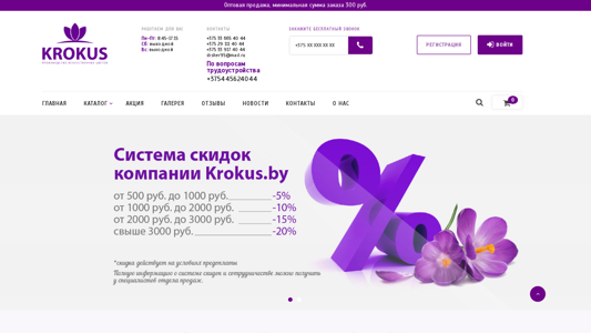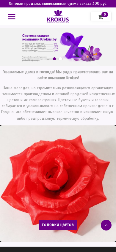 | AI-анализ | The portal krokus.by is an e-commerce site for buying artificial flowers in bulk in Belarus. The minimum order value is 300 rubles, and the business operates Monday through Friday from 8:45 AM to 5:15 PM, and Saturdays and Sundays are holidays. The company manufactures and sells artificial flowers, bouquets, and their accessories on its own production site in Grodno, ensuring high quality and avoiding any pre-sale thermal processing. The site offers a wide range of products, including flower heads, bouquets, add-ons, greenery, single flowers, and autumn discounts. The business also provides contacts for employment inquiries. |