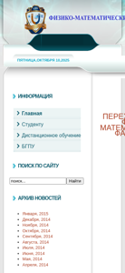 | AI-анализ | The website is the homepage of the Physics Faculty at Belarusian State Pedagogical University named after Maxim Tank in Minsk, Belarus. The address is Sovietskaya Street 18, Educational Building No. 3. The page displays information for students and prospective students about the university and its physics, informatics, and mathematics programs. The top of the page includes links to various sections such as "Current News," "Distanced Learning," and an "Archive of News." The page also provides a search function and a calendar with links to past and upcoming events. The design is simple, with a text size adjustment option and a visitor counter. The domain name is phys.bspu.by. |