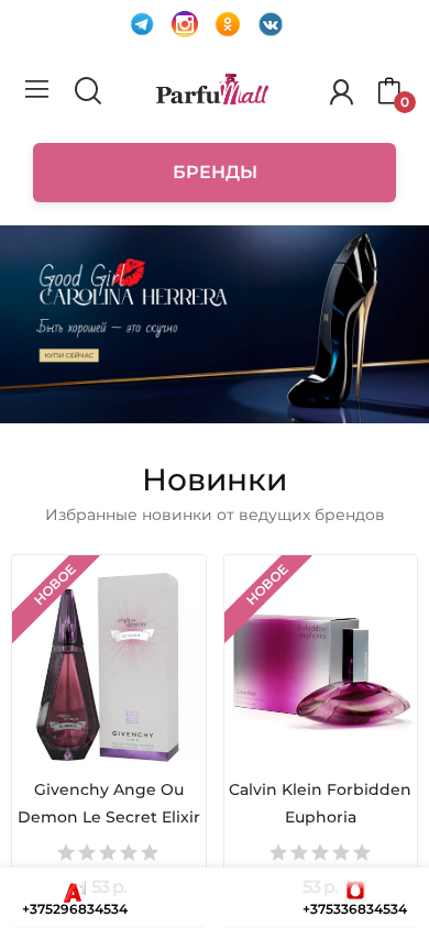 | AI-анализ | --- The website is an online perfume store called Parfumall, offering delivery in Minsk and Belarus. Customers can purchase a wide range of perfumes, including over 400 perfume brands, originals, copies, and samples. The store offers fast delivery across Belarus. The website includes sections for women's and men's perfumes, as well as categories for licensed European perfumes, gift sets, compact sizes, body oils, and testers. The store also offers discounts. The website's top keywords include 'testers', 'quick', 'view', 'wishlist', 'cart', 'detailed', 'add', 'remove', 'new', 'perfume', 'perfume shop', 'delivery', 'sets', 'compact', 'samples', 'originals', 'women', 'men', 'discounts'. The website |