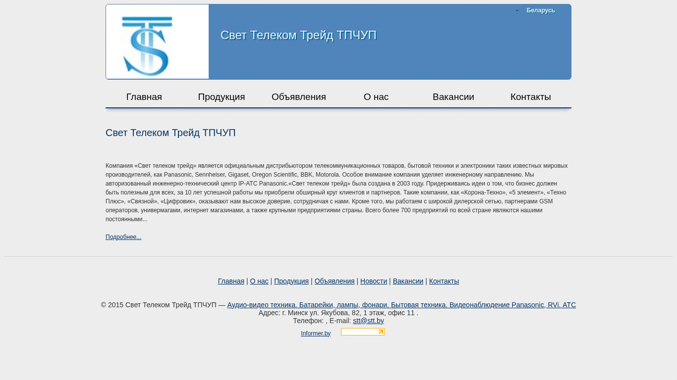 | SEO-лексика | свет телеком трейд тпчуп главная нас panasonic продукция объявления новости вакансии контакты компания техника stt беларусь является официальным дистрибьютором телекоммуникационных |