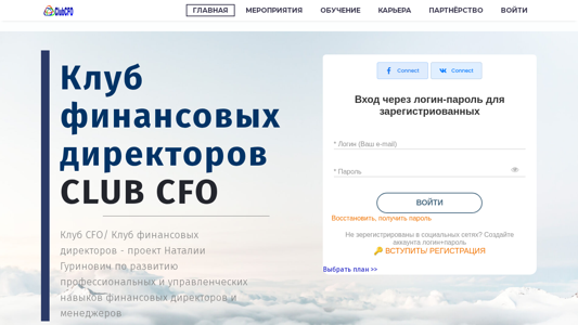 | AI-анализ | The website is the official site for Club CFO, a project aimed at developing professional and managerial skills for financial directors and managers. The site offers information and seminars for registration and participation, as well as materials for non-registered users. The club, led by Natalia Gurinchik, hosts various events, some of which are recorded and available for viewing. The site also features an education section with obuчающие курсы, or teaching courses, and a career section where users can apply for partnerships and find job opportunities. Users can access the site with a login-password combination or create an account. The site also offers various membership plans, including benefits like extended membership with a discount and partner bonuses. |