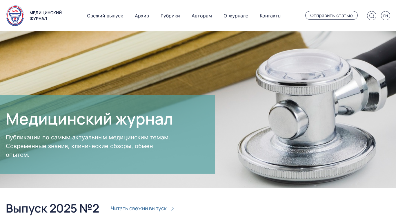 | AI-анализ | --- The portal medmag.bsmu.by is a scientific-practical, peer-reviewed medical journal published by Belarusian State Medical University. It covers current issues in modern medical science and provides readers with insights into practical, theoretical, and research activities in the field of medicine. The journal covers various medical specialties, including cardiology, neurology, pulmonology, otorhinolaryngology, gastroenterology, endocrinology, urology, dermatology, rheumatology, surgery and others. The journal, which has been in publication since 2002 and releases one issue every three months, is registered under number 25 from February 17, 2009. The editorial team is led by Dr. Sc. (Med.), Professor Yu.K. Abaev as the editor-in-chief, and |