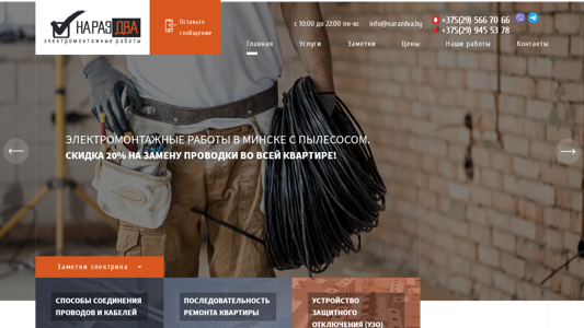 | AI-анализ | The portal Narazdva.by offers various electric installation services in Minsk and its suburbs. The company has been operating for over nine years and provides a wide range of electric installation works, from repairing a socket to replacing all the wiring in a flat. They offer a 20% discount on the installation of new wiring in an entire flat. The company works without a deposit and is confident in the quality of their work. Services include electric installation works in Minsk with a vacuum cleaner. They also replace aluminum wiring with copper. The company has experience in connecting various types of cables and wires. They provide information on how to repair a flat and when it is necessary to replace the wiring. The website includes articles on various topics related to electricity and electric installation, as well as information about the company. The company has been in business since 2015 and has completed thousands of |